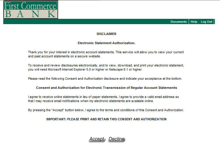 3. A new window may open, Read the Electronic Statement Authorization Disclaimer and click Accept.