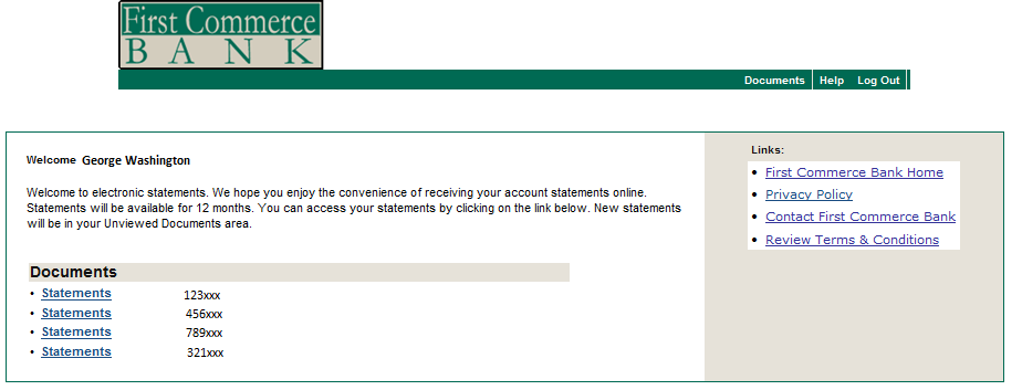 At First Commerce Bank, we realize the impact we can have on our environment, and we do our best to limit our use of paper and other consumables whenever possible. We have invested considerable resources in technology and are striving to become more "paperless" in our day-to-day processing. We hope you will consider banking electronically whenever possible.